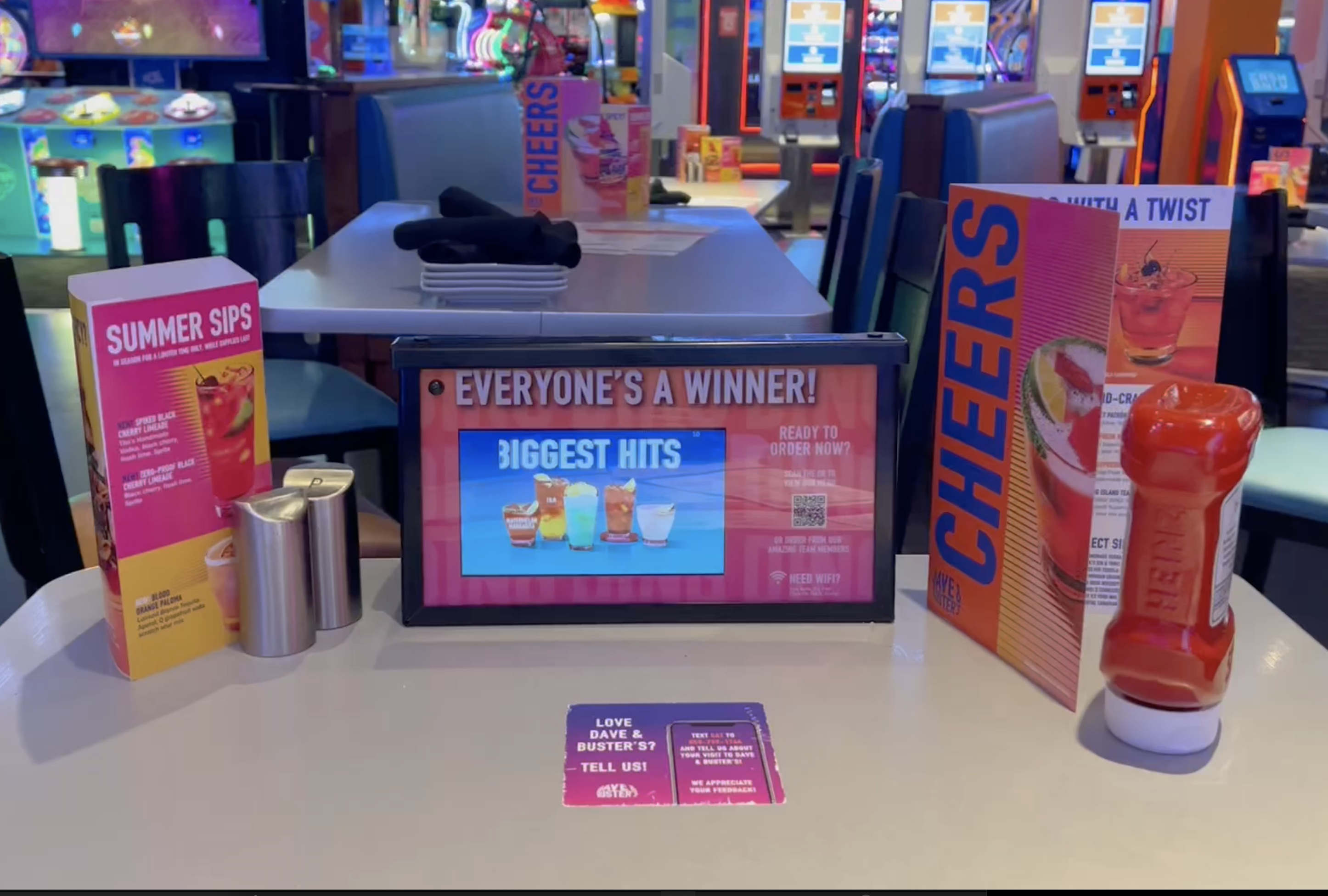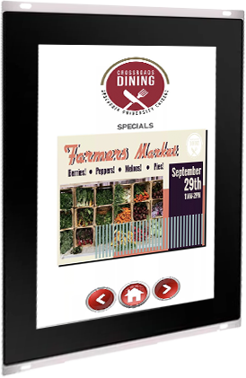 Small form factor battery powered displays at dining tables.